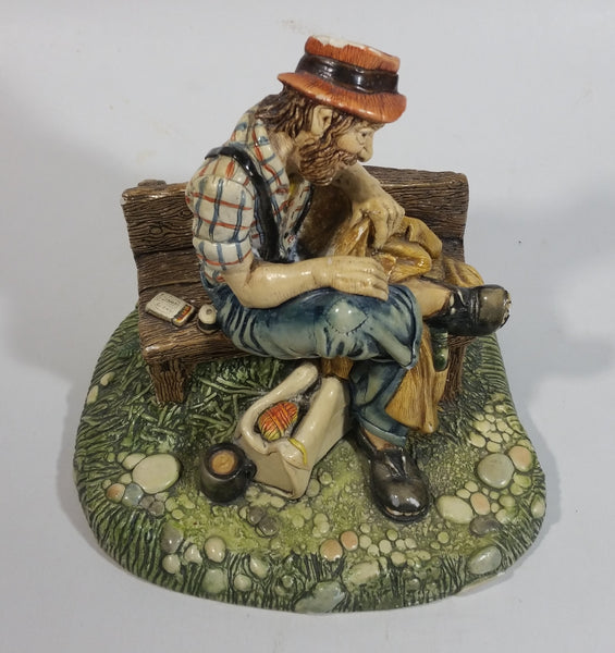 Vintage 1973 Naturecraft "Solitude" Man On A Bench No. 836 Hand Painted Stoneware Sculpture