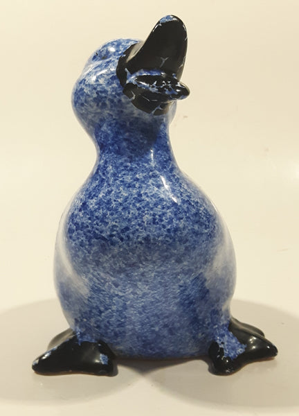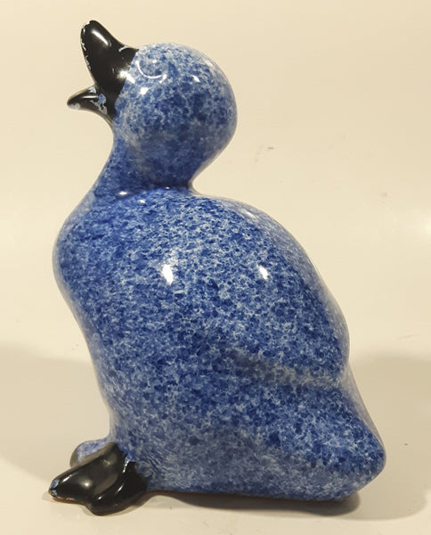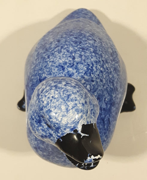 Vintage 1983 Enesco Blue Speckled Duck with Black Beak 6" Tall Ceramic Figurine