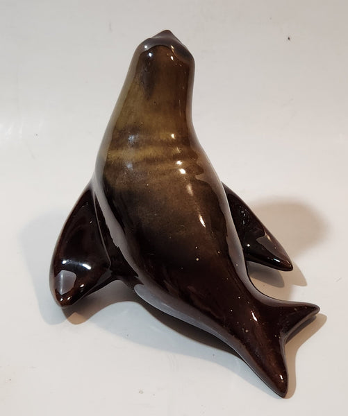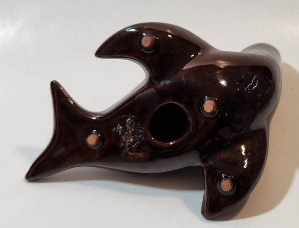 Vintage Grand River Pottery Fergus Canada Ceramic Brown Swirl Seal Figurine