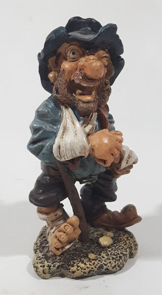 Vintage Hobo Man Hick with Arm in Sling and Missing Teeth and a Boot 3 3/4" Tall Resin Figurine