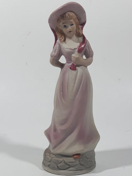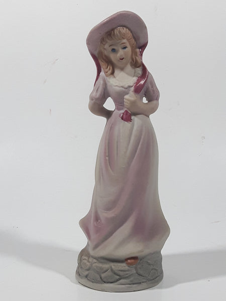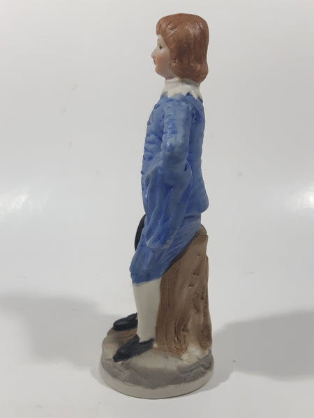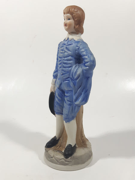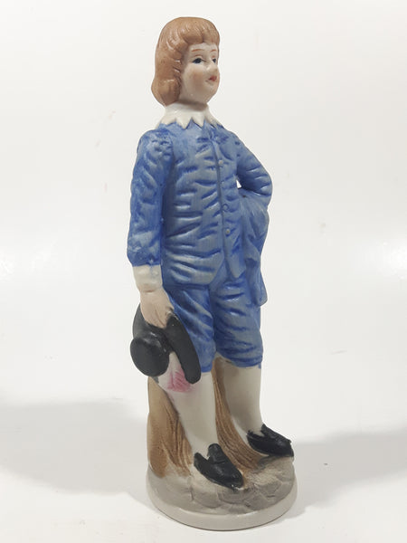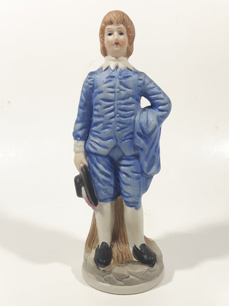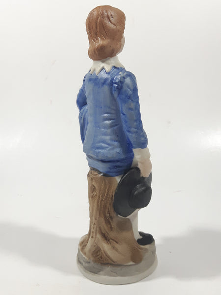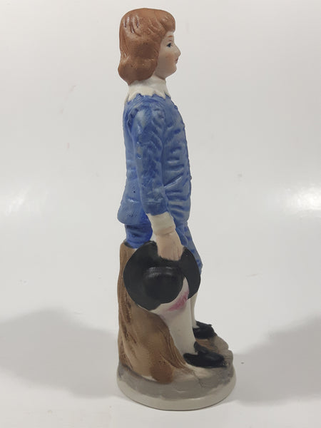 Vintage Homco Blue Boy Holding Black Hat and Pinkie Girl in Pink Dress 6" Tall Ceramic Figurine Set of 2