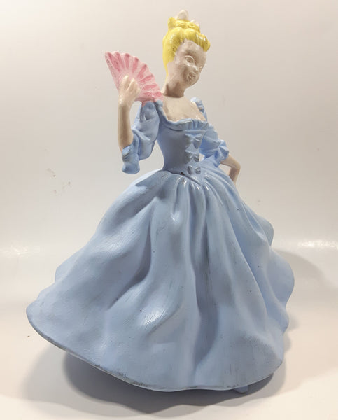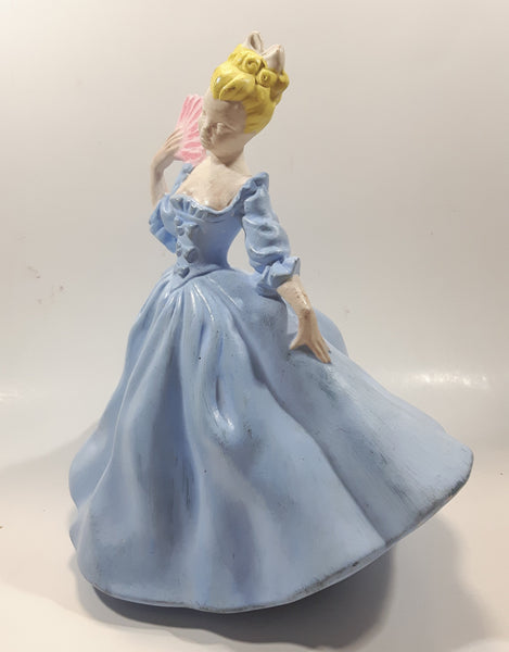 Vintage LJ Lady Jane with Hand Fan Blue Hand Painted 9 1/2" Tall Ceramic Figurine Statue