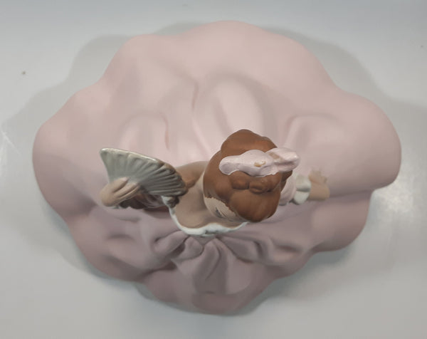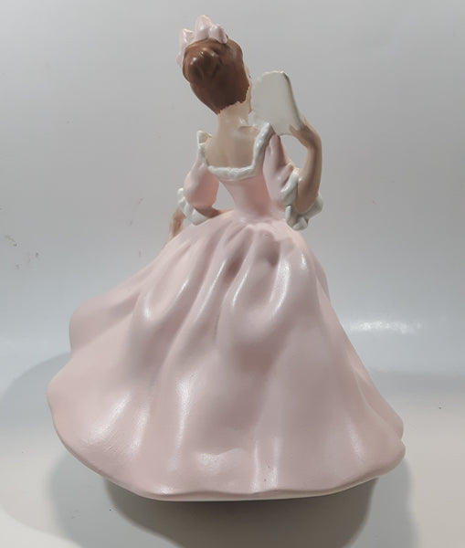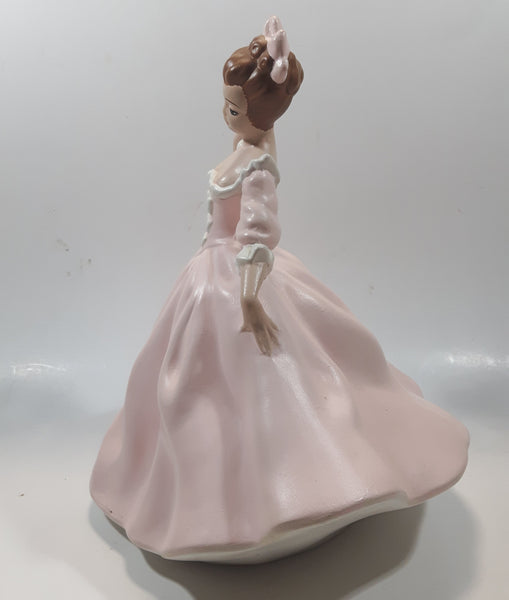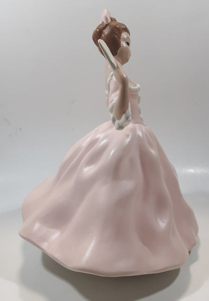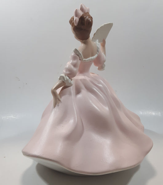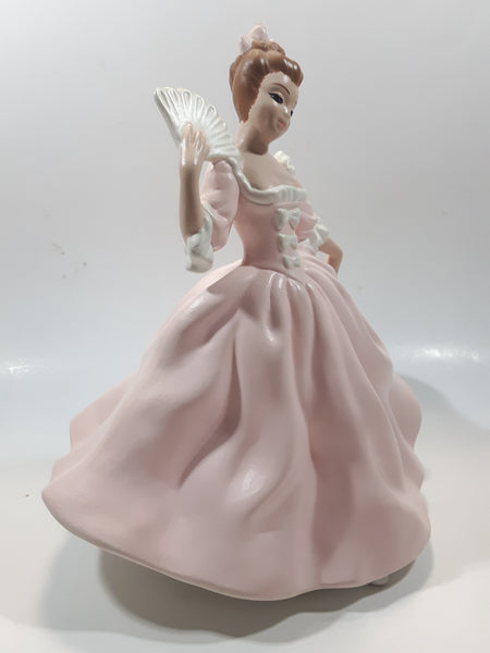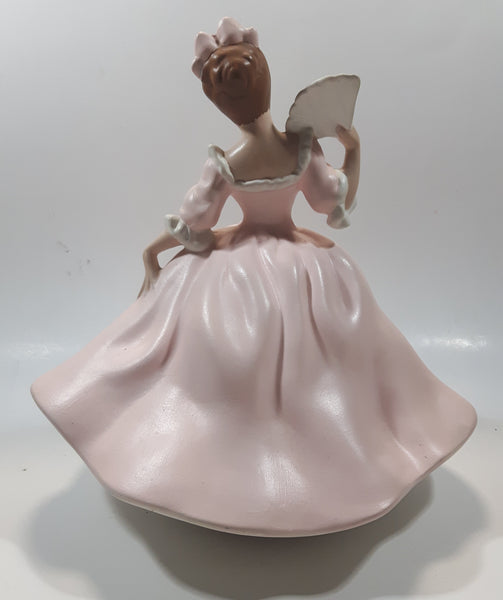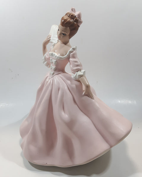 Vintage LJ Lady Jane with Hand Fan Pink Hand Painted 9 1/2" Tall Ceramic Figurine Statue