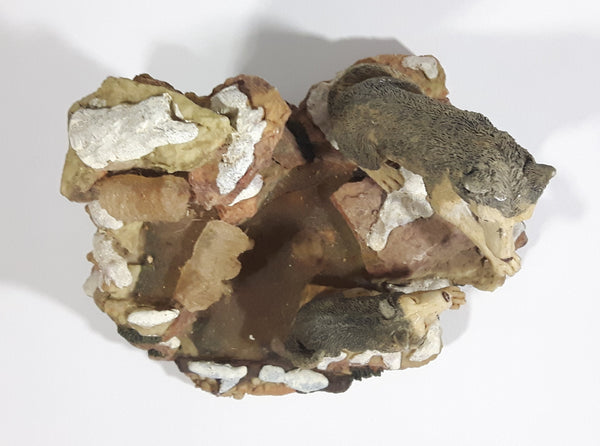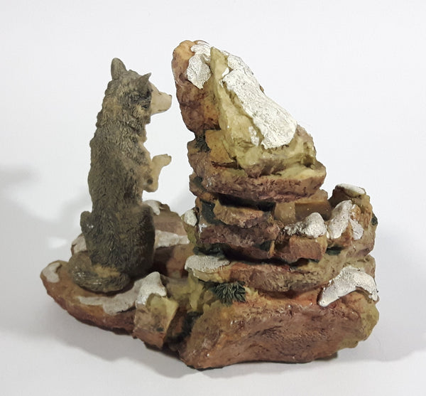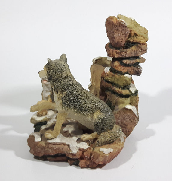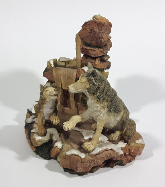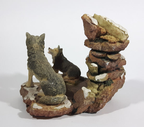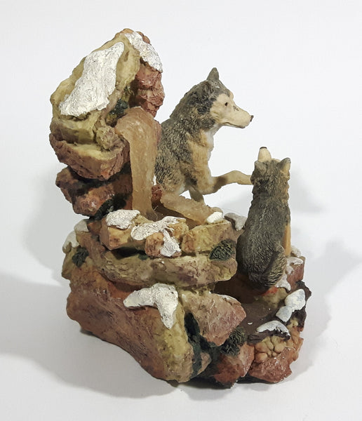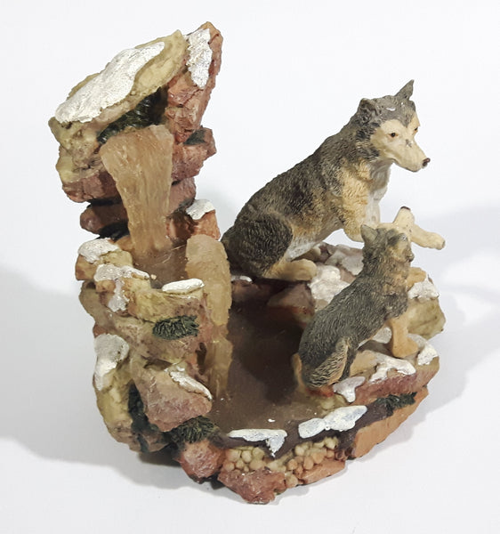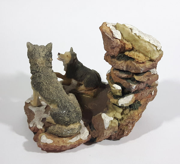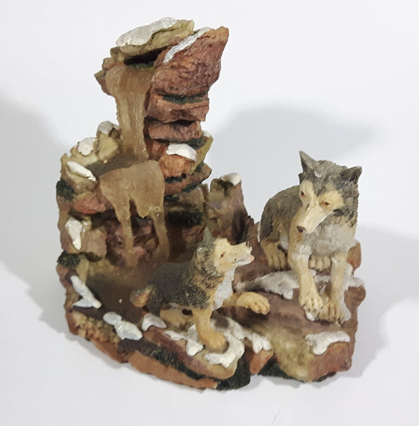 Wolf Wolves Sitting Near a Frozen Water Fall on Snow Covered Rocks Resin Sculpture Wildlife Collectible