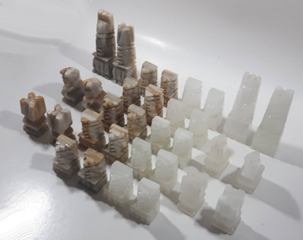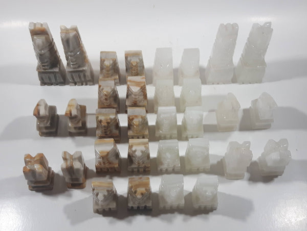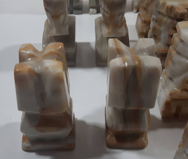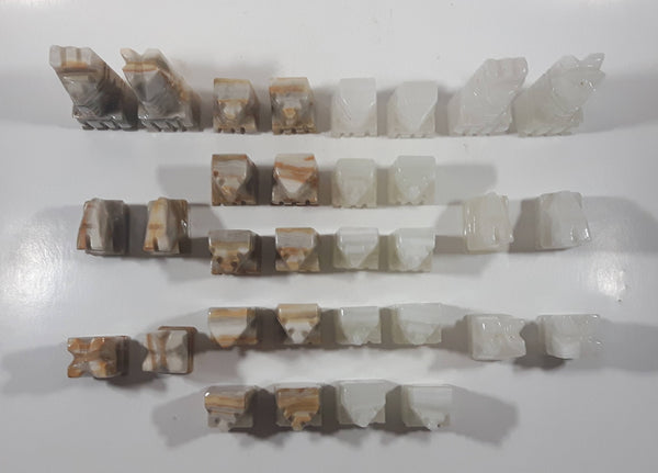 Vintage Carved Granite Onyx Marble Brown and White Complete 32 Piece Set