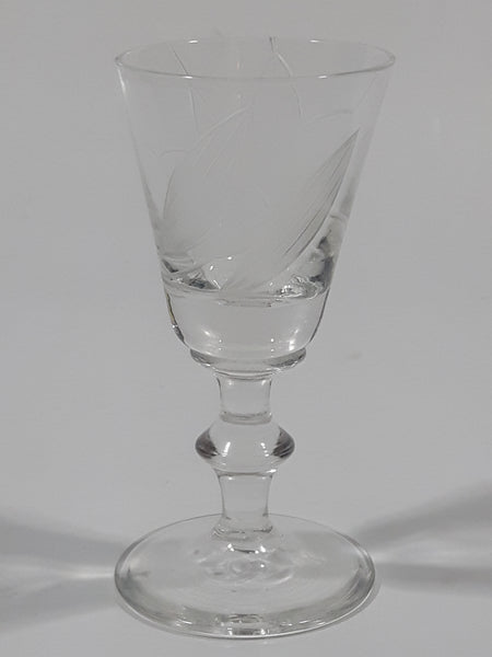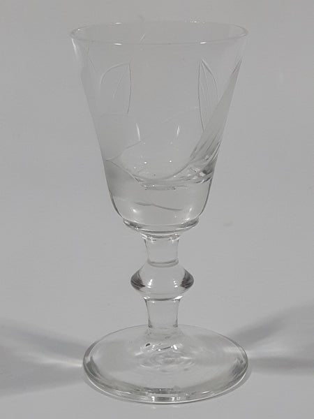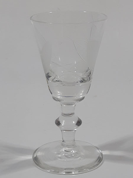 Etched Flower Pattern Miniature 2 3/8" Tall Glass Sherry / Port / Wine Cup