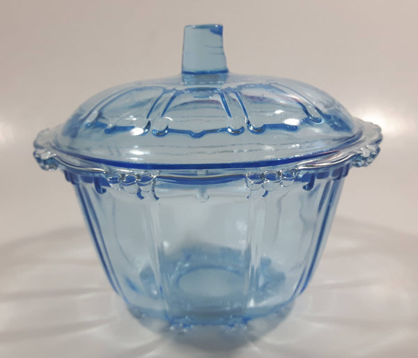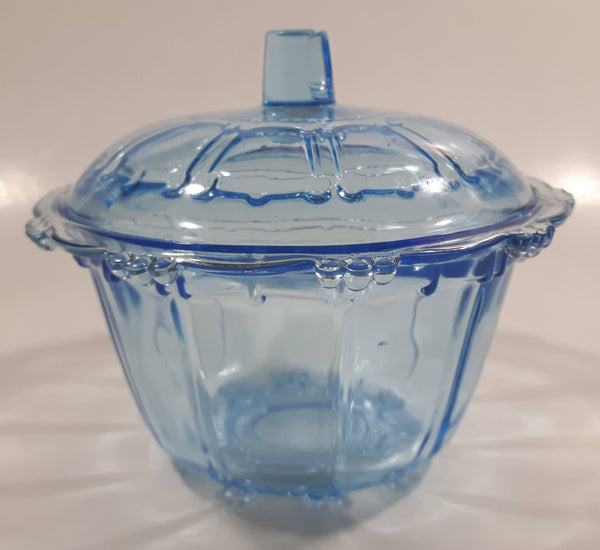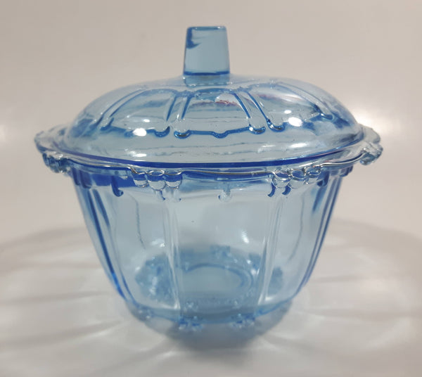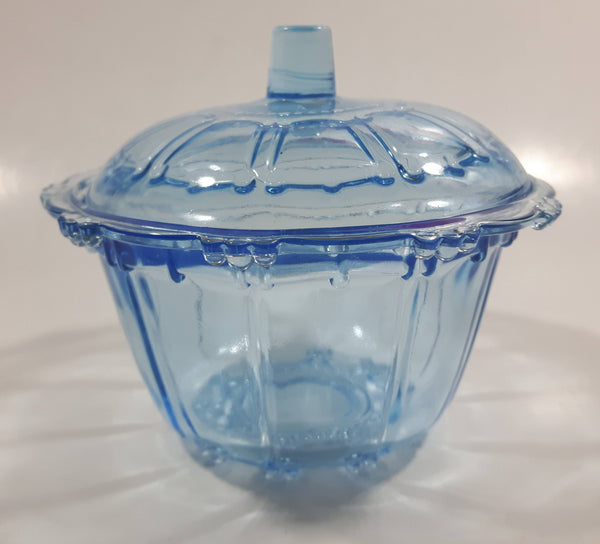 KIG Indonesia Light Blue Glass Lidded Candy Trinket Dish - Lid Handle is Chipped