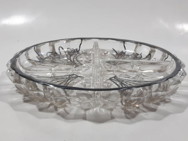 Vintage Lily Of The Valley Flower Pattern Silver Overlay 7" Wide Glass Serving Dish