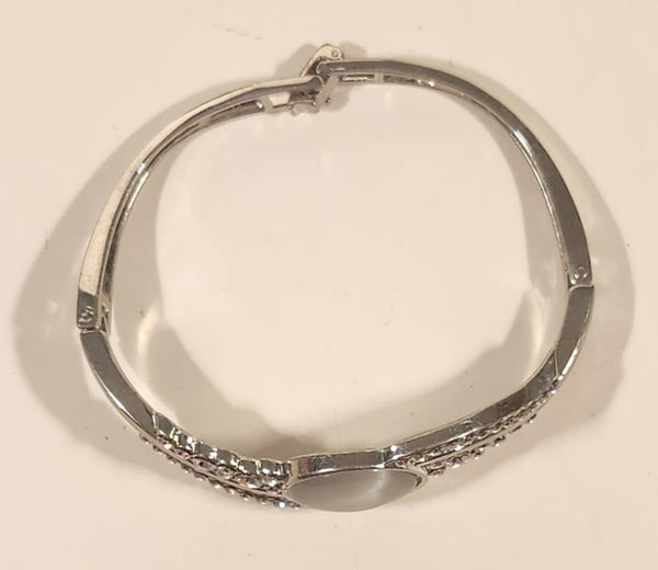 Clear Rhinestone with Moonstone in Silver Tone Metal Bracelet