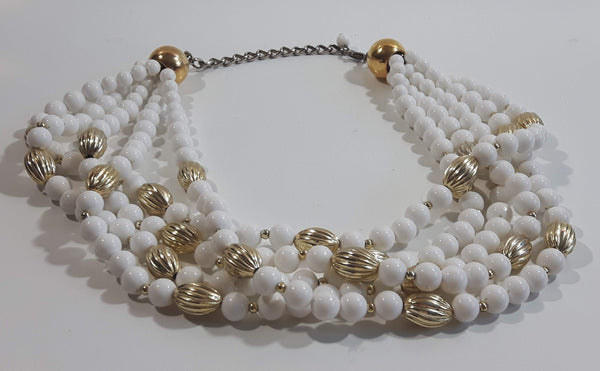 Multi Layered Faux White Pearl 14" Long Choker Necklace Costume Jewelry