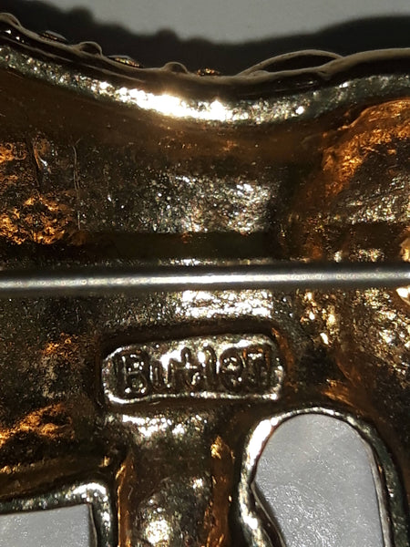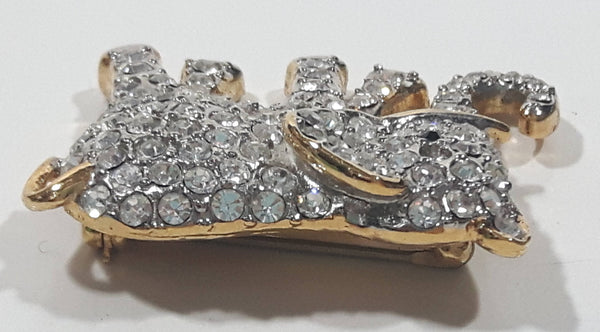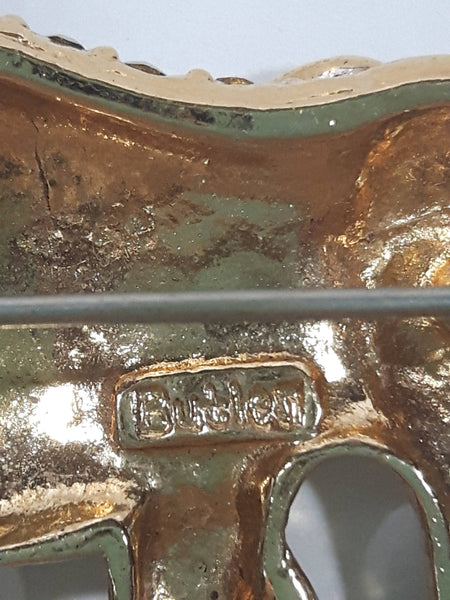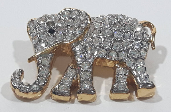 Vintage Butler Elephant Shaped Sparkling Rhinestone Golden Tone Metal Brooch Pin