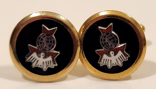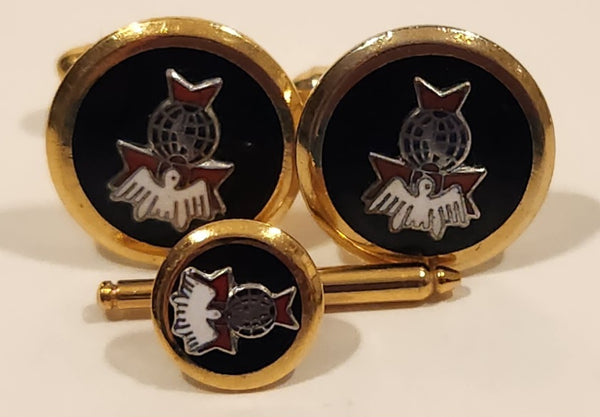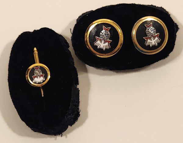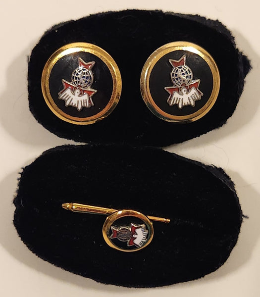 Vintage Knights of Columbus 4th Degree Enamel Gold Tone Cufflinks Set and Tie Stud