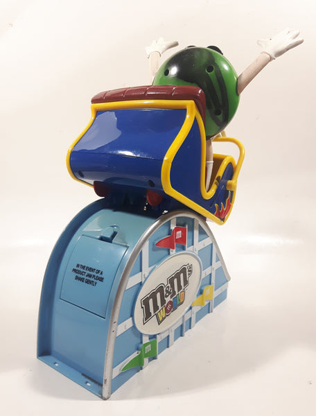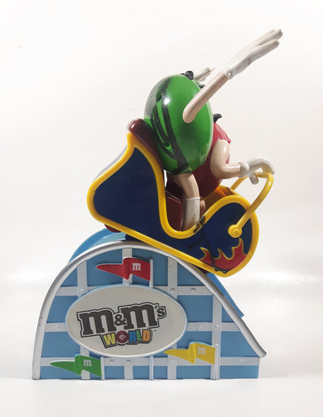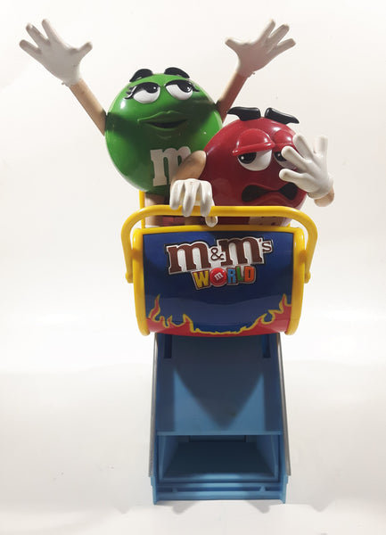 M & M's World Roller Coaster Ride Green and Red Character 10 1/2" Tall Plastic Candy Dispenser