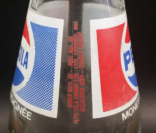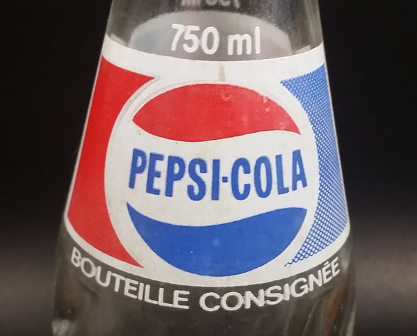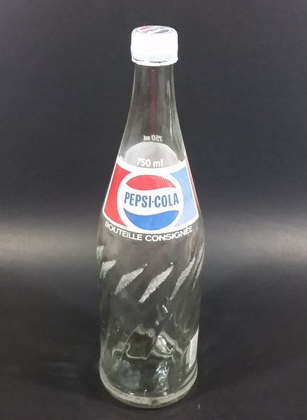 Vintage 1979 Pepsi Cola Soda Pop Beverage 750 mL English French Clear Glass Twist Bottle w/ Cap
