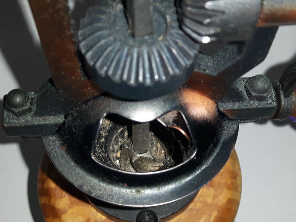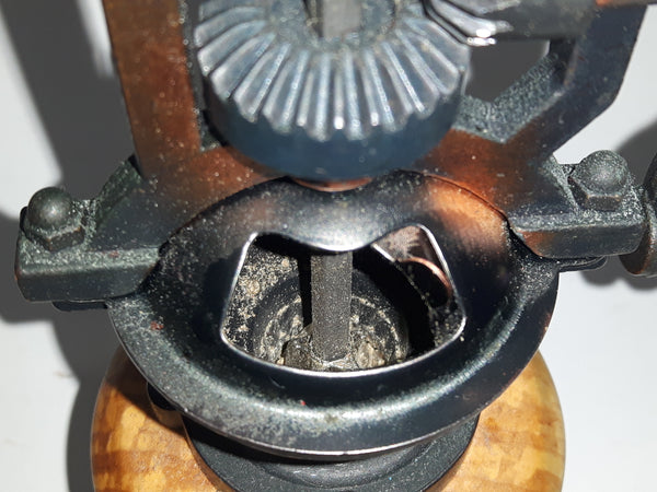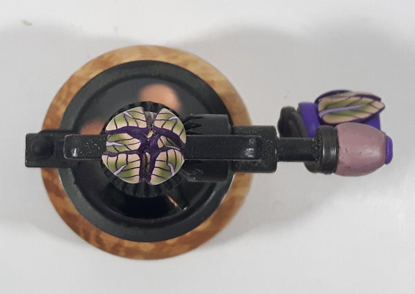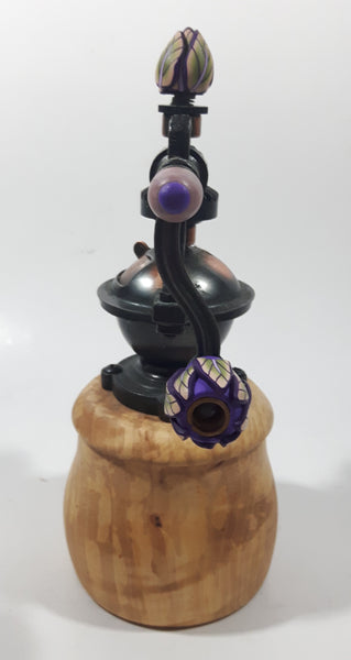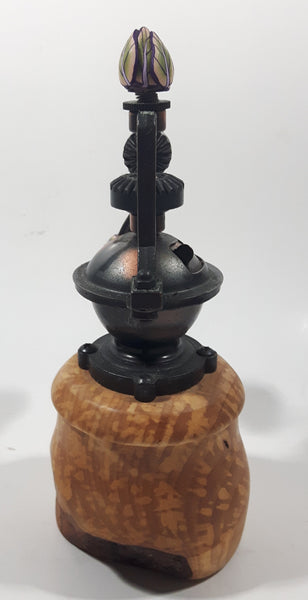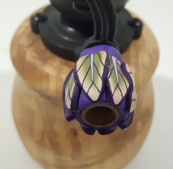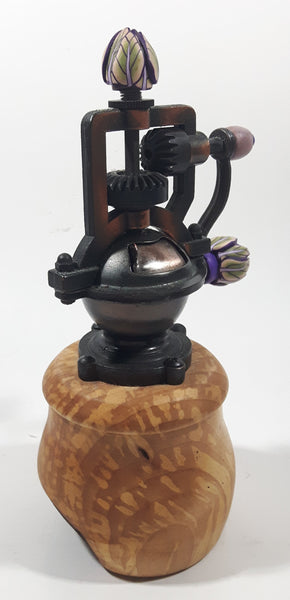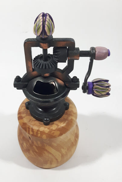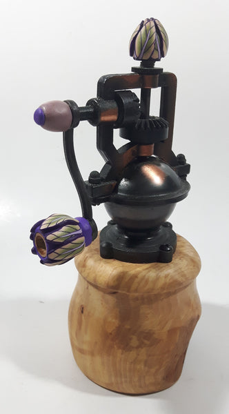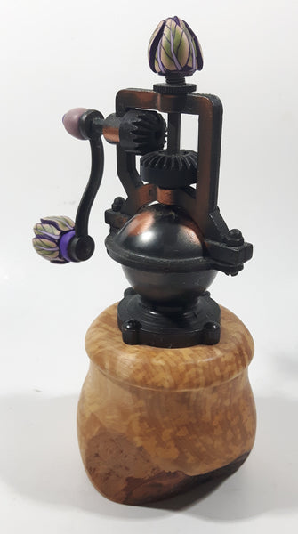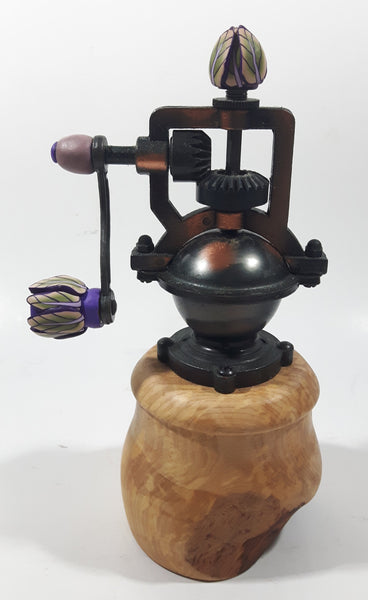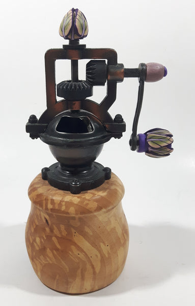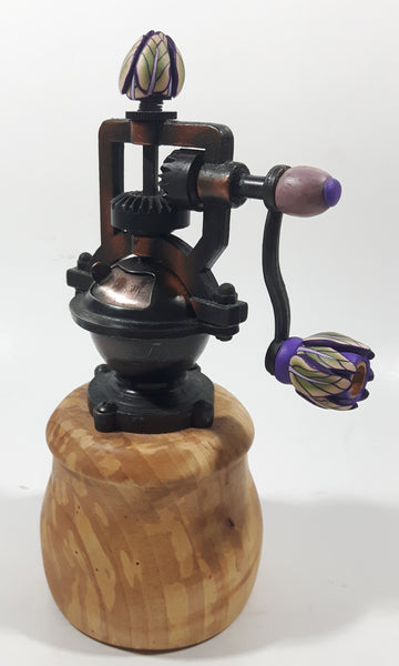 Vintage Style Unique Wood Based with Copper Toned Metal Closed Purple Flower Handles and Top 7 1/4" Tall Pepper Mill Grinder