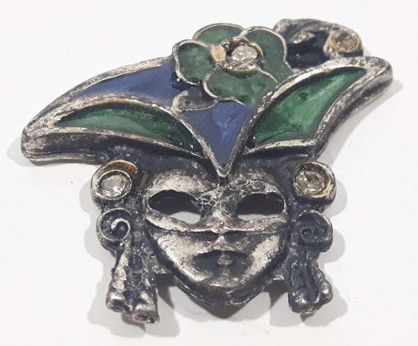 Mardi Gras Mask with Rhinestones 1 7/8" x 1 7/8" Enamel Metal Fridge Magnet