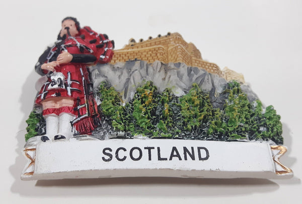 Scotland Castle and Bagpipe Player 2 1/8" x 2 5/8" 3D Resin Fridge Magnet
