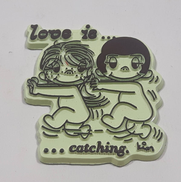 Vintage 1970 United Features Syndicate Kim Casali "Love is ..." "... catching." Light Green Rubber Fridge Magnet
