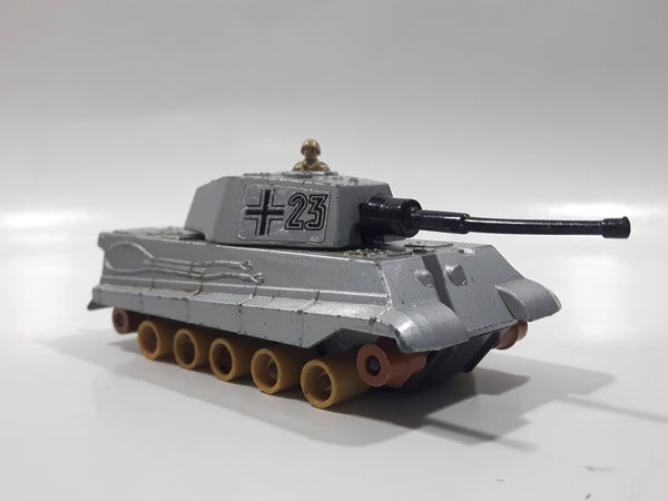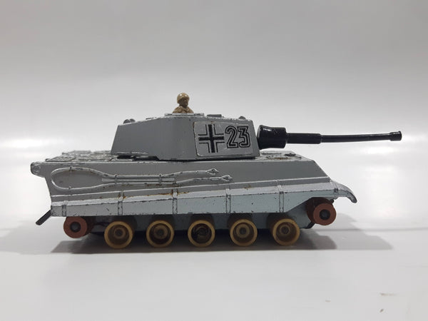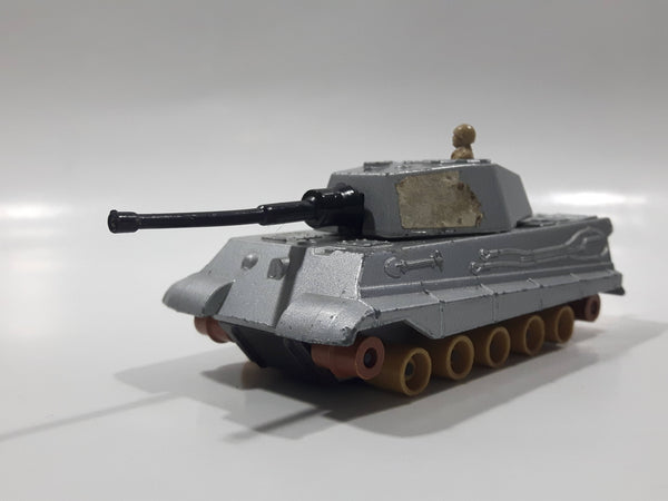 Vintage 1974 Lesney Matchbox Battle Kings K-104 King Tiger Tank Silver Army Die Cast Toy Car Vehicle - No Tracks