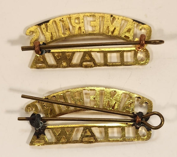 Vintage WWII Camerons Ottawa Highlanders Brass Shoulder Badge Title Set of 2