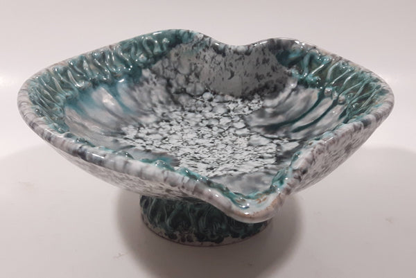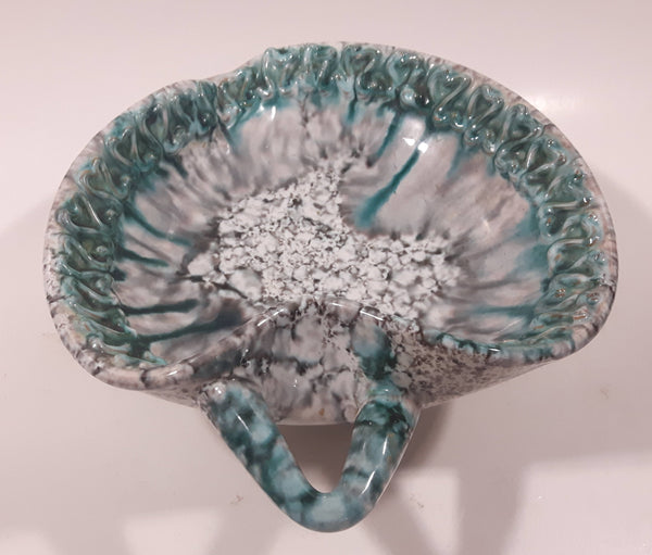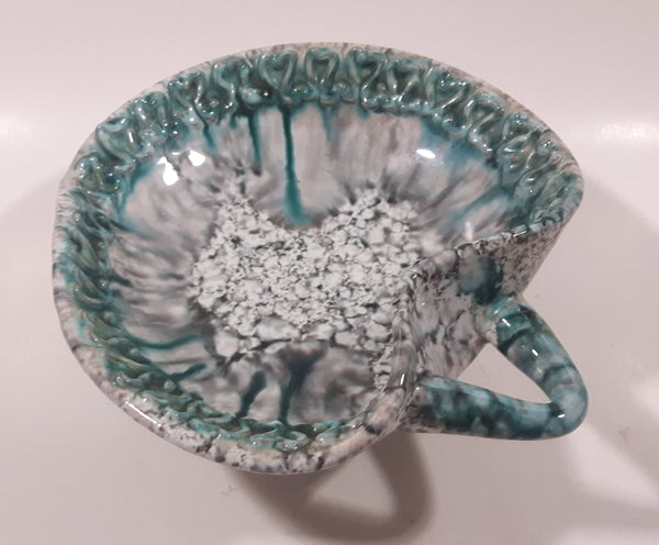 Antique Italian Embossed Teal Green and White Heart Shaped Pottery Candy Dish 6958 Italy