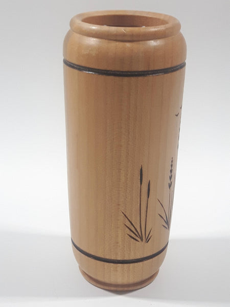 David Barclay Sunfox 5" Tall Wood Plant and Bird Engraved Ornament