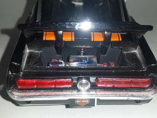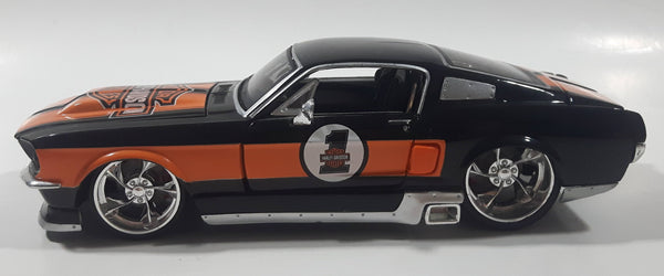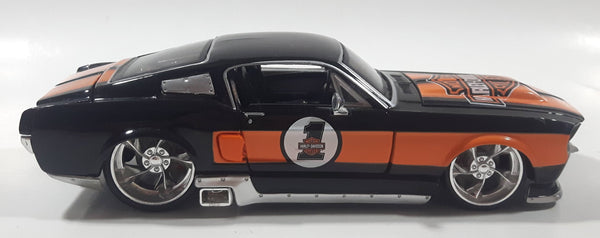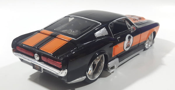Maisto Harley Davidson Motor Cycles 1967 Ford Mustang GT Black and Orange 1/24 Scale Die Cast Toy Car Vehicle with Opening Hood, Trunk, and Doors