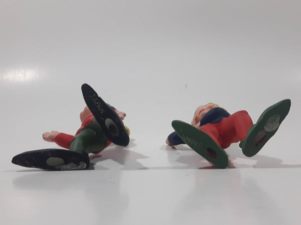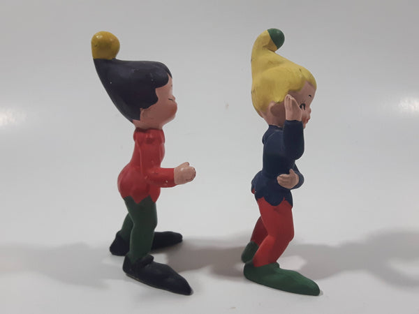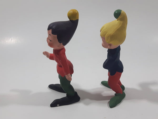 Rare Vintage Pixie Elf Gnome Matte Finish 4 1/8" Tall Ceramic Figures Made in Japan