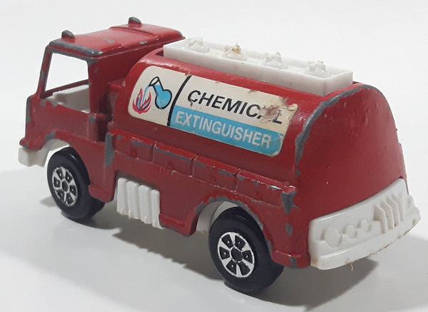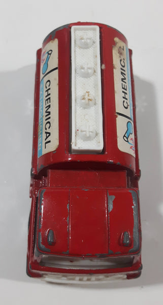Vintage 1970 Tootsie Toy Chemical Extinguisher Tank Tanker Truck Red and White Pressed Steel and Plastic Toy Car Vehicle