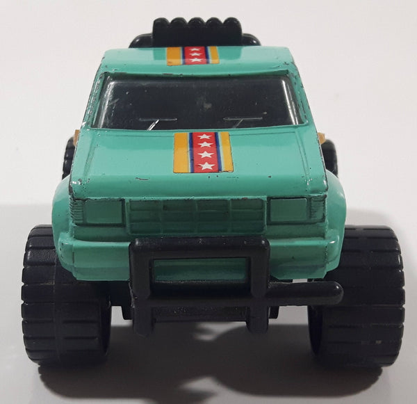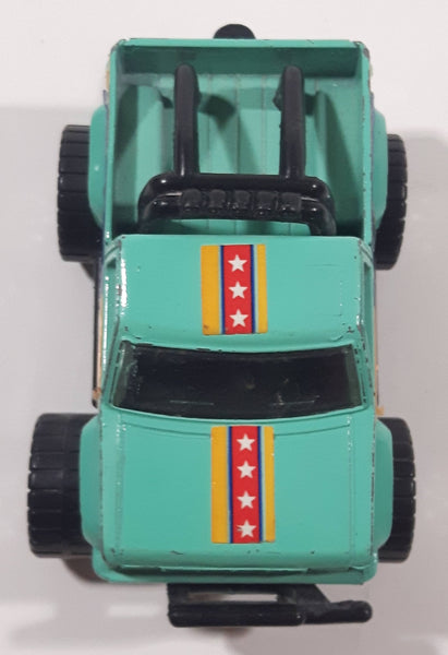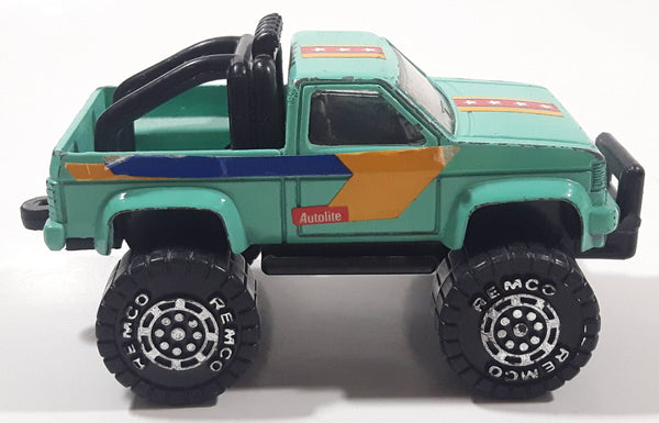 Vintage 1987 Remco 4x4 Pickup Truck Autolite Light Teal Green Pressed Steel and Plastic Toy Car Vehicle
