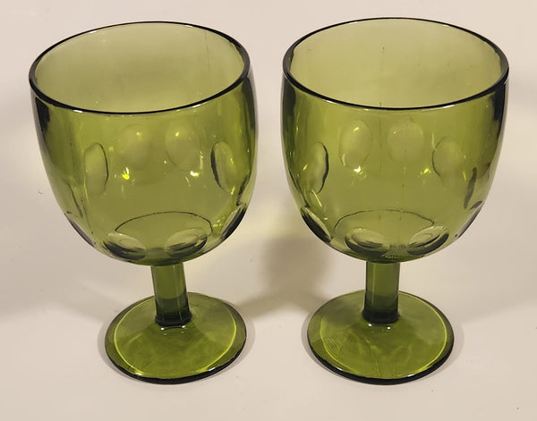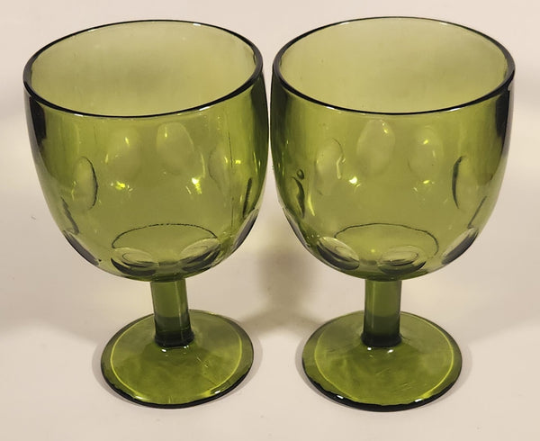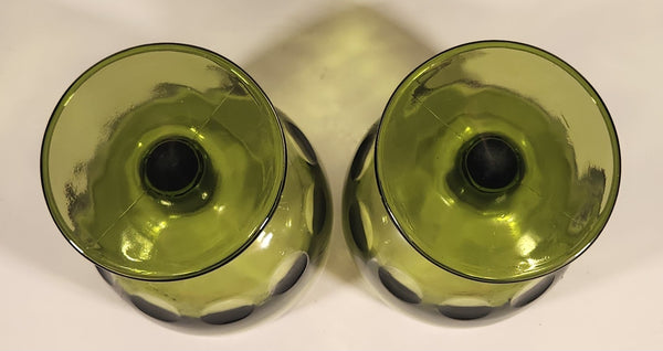 Vintage Bartlett Collins Thumbprint Avocado Green Glass Pedestal Cup Goblets Set of 2