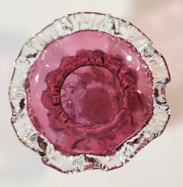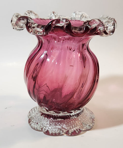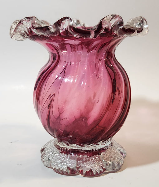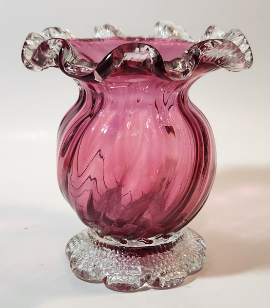 Vintage Cranberry Glass Ruffled Edge 6 1/4" Tall Heavy Flower Vase