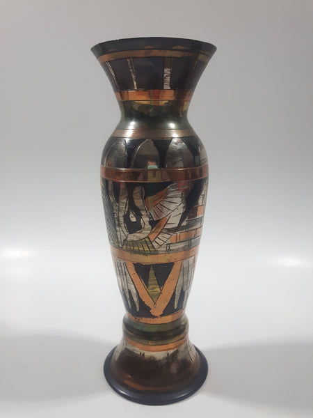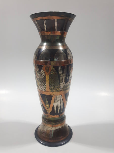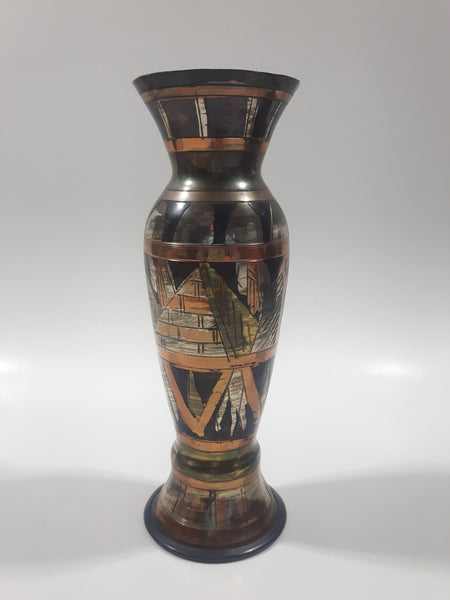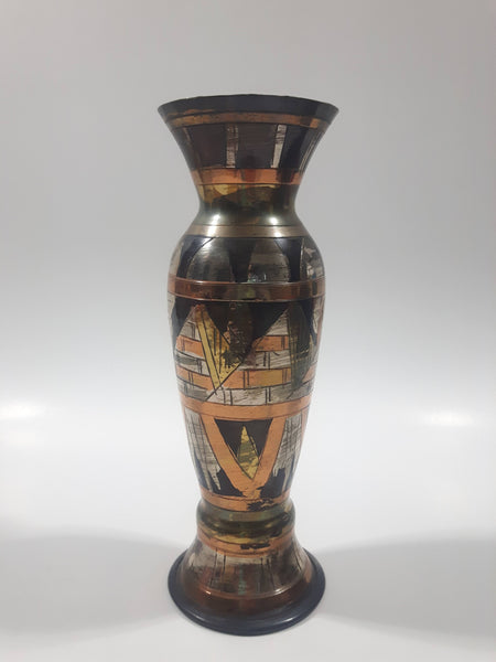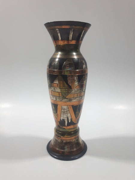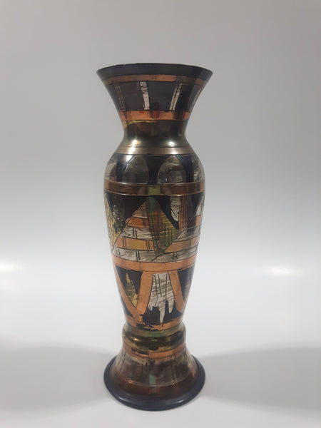 Vintage Pyramids Themed 6" Tall Brass and Copper Metal Vase