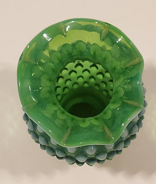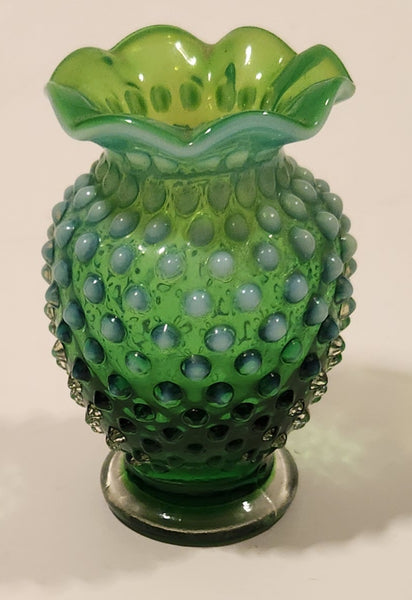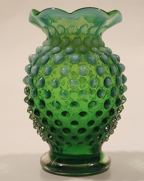 Vintage Fenton Hobnail Emerald to Mint Green 3 3/4" Tall Bud Vase with Ruffled Edge