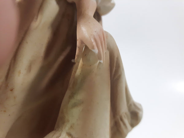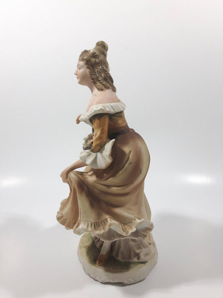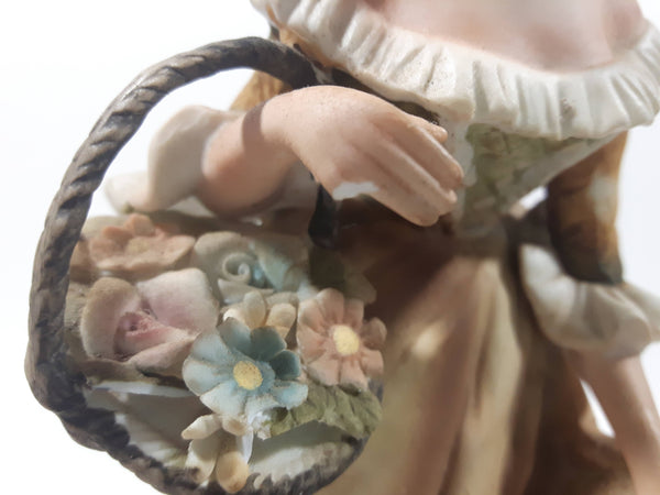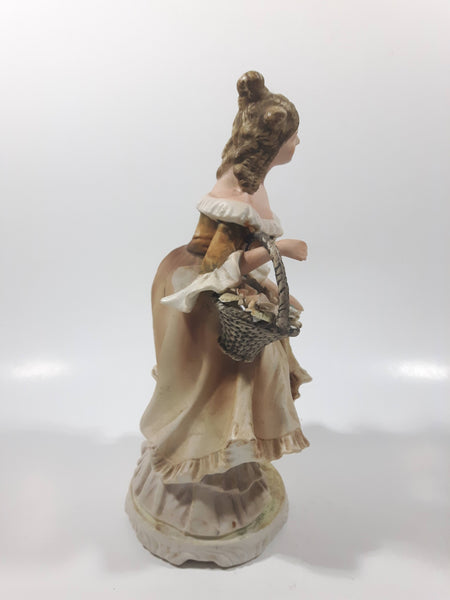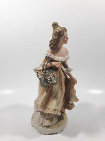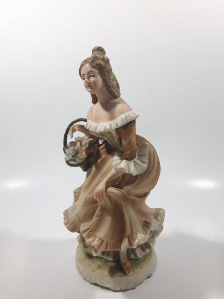Vintage Lefton Giftcraft Woman Lady In Dress Holding a Basket of Flowers 7 1/2" Tall Ceramic Figure KW344B Has Chips