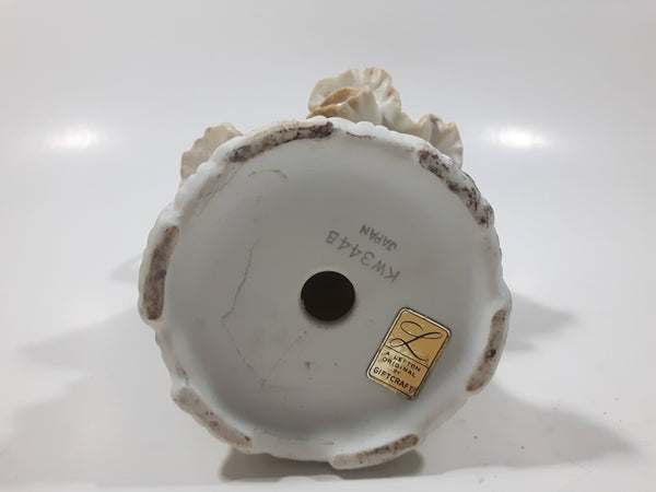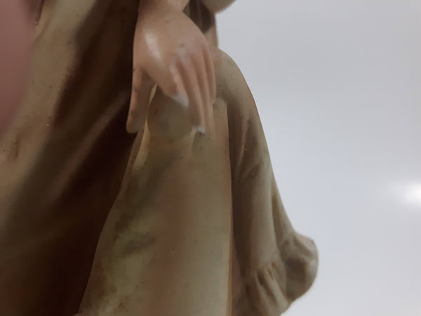 Vintage Lefton Giftcraft Woman Lady In Dress Holding a Basket of Flowers 7 1/2" Tall Ceramic Figure KW344B Has Chips