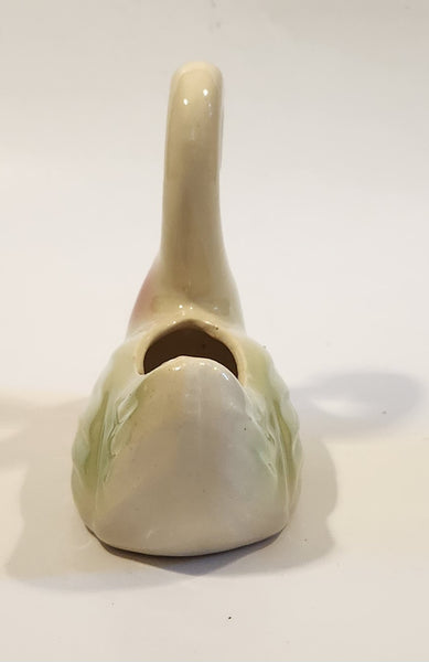 Vintage Pink Green White 5 1/4" Long Swan Bird Planter