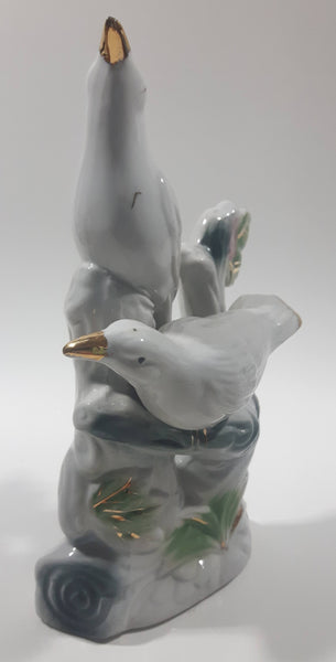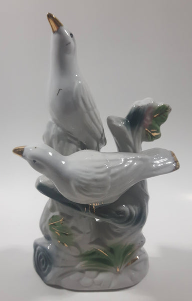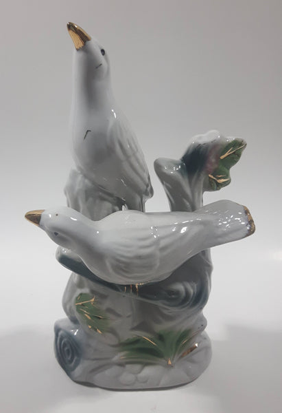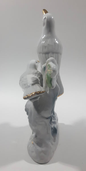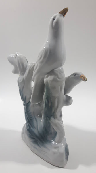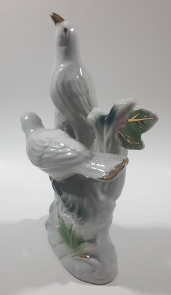 White Love Birds 8" Tall Porcelain Ceramic Bird Sculpture