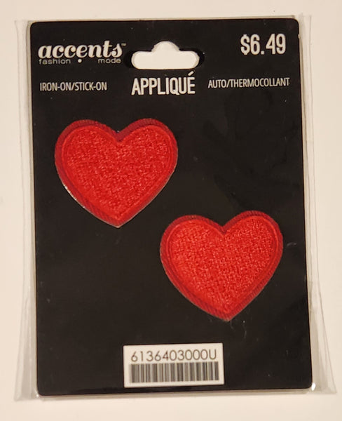Accents Fashion Mode Applique 2 Red Hearts Iron-on/Stick-on 1 1/4" x 1 3/8" Embroidered Fabric Patch Badge New in Package