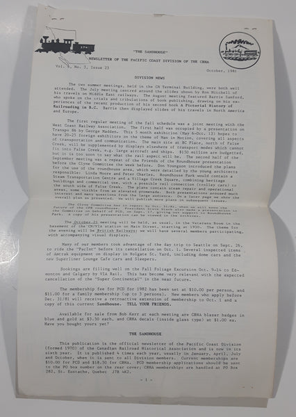 October 1981 Canadian Railroad Historical Association The Sandhouse Newsletter Of The Pacific Division Of The C.R.H.A. Vol. 6, No. 3, Issue 23