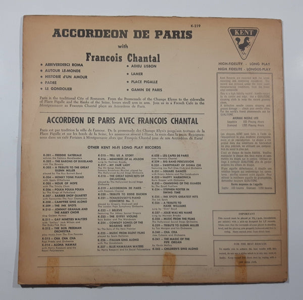 Kent Accordeon de Paris Music Of The French Cafe with Francois Chantal 12" Vinyl Record