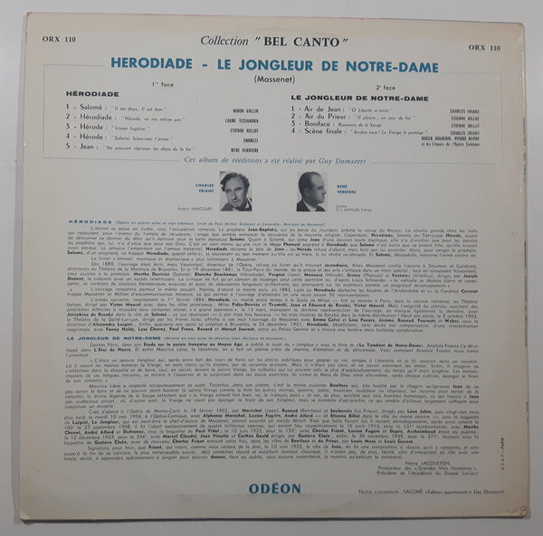 Odeon Collection "Bel Canto" Herodiade - Le Jongleur De Notre-Dame 12" Vinyl Record