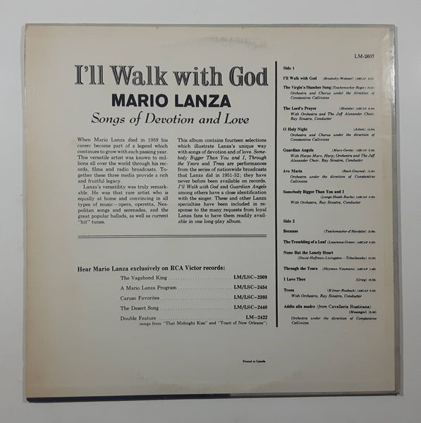 RCA Victor Red Seal I'll Walk with God Mario Lanza Songs of Devotion and Love 12" Vinyl Record