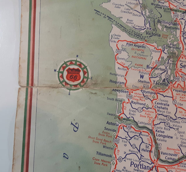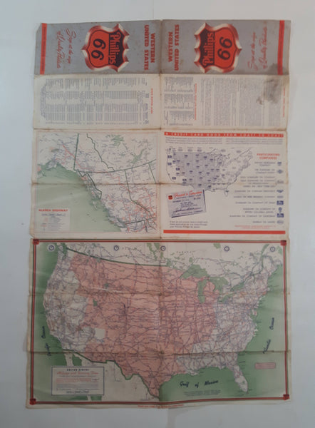 Vintage 1951 Phillips 66 Western United States Paper Map Phillips Petroleum Company
