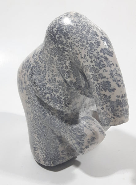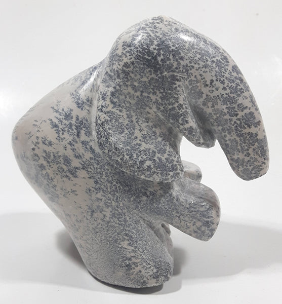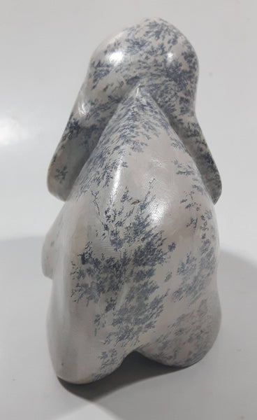African Elephant Light Grey Solid Soapstone Hand Carved 4 1/4" Tall Animal Sculpture