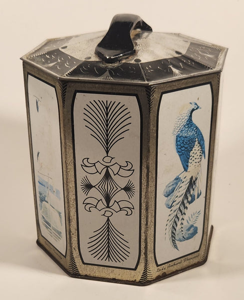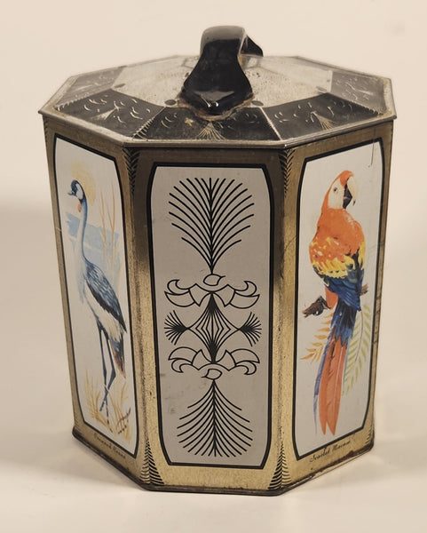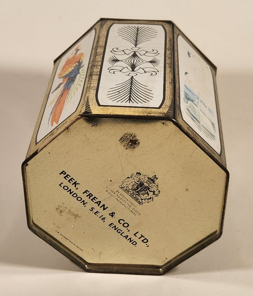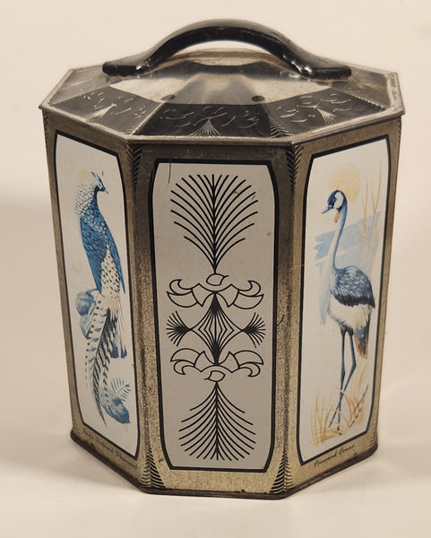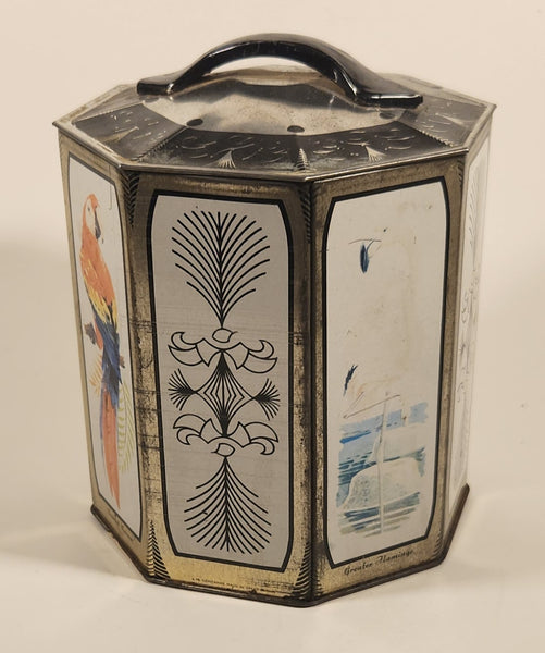 Vintage Peek Freans Scarlet Macaw Crowned Crane Lady Amherst Pheasant Greater Flamingo Bird Themed Octagonal Tin Metal Container