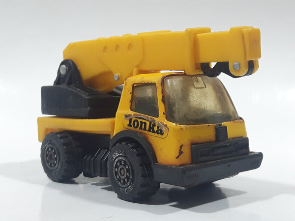 Vintage Tonka Picker Crane Utility Truck Yellow Pressed Steel and Plastic Die Cast Toy Car Vehicle Made in Hong Kong
