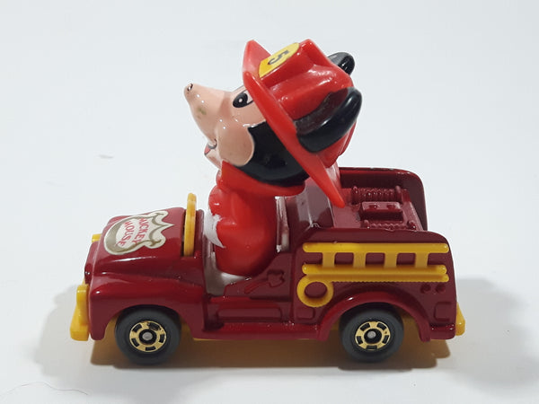 Vintage Tomy Walt Disney Production No. PD-2 Mickey Mouse Fireman Red and Yellow Plastic and Die Cast Metal Toy Car Fire Truck Firefighting Vehicle