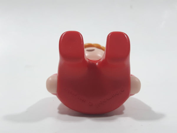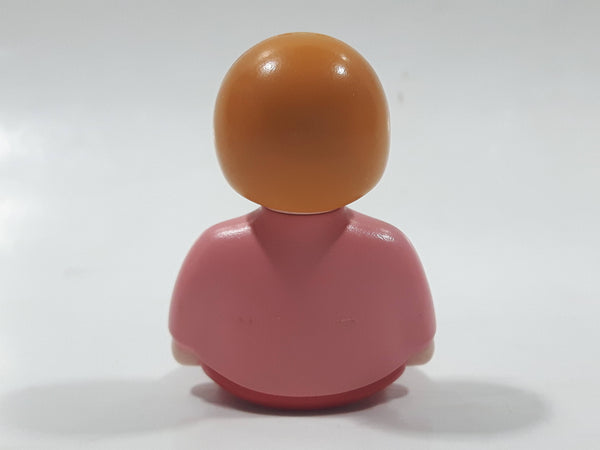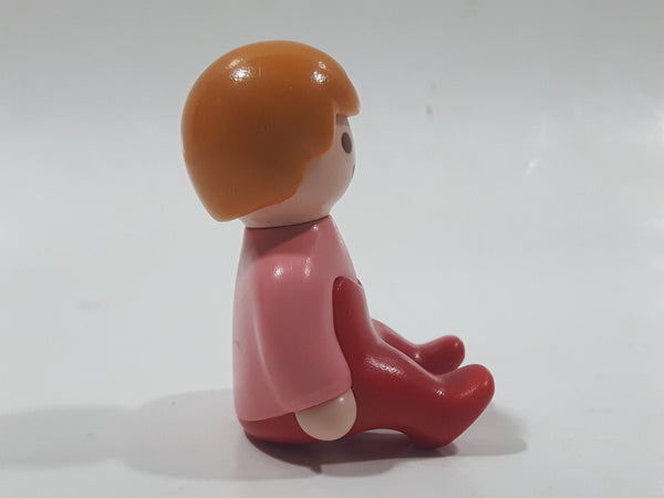 1990 Geobra Playmobil Female Girl Pink Shirt Red Pants Sitting 1 1/2" Tall Toy Figure