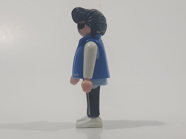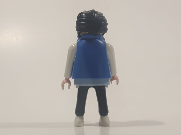 1992 Geobra Playmobil Black Hair Black Pants Light Blue and Grey Z Shirt with Blue Vest Rock Star Style 2 3/4" Tall Toy Figure